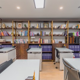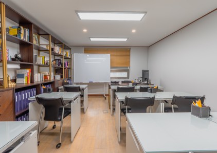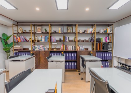 자습실에서 공부하며 필요시 선생님의 도움을 구합니다.